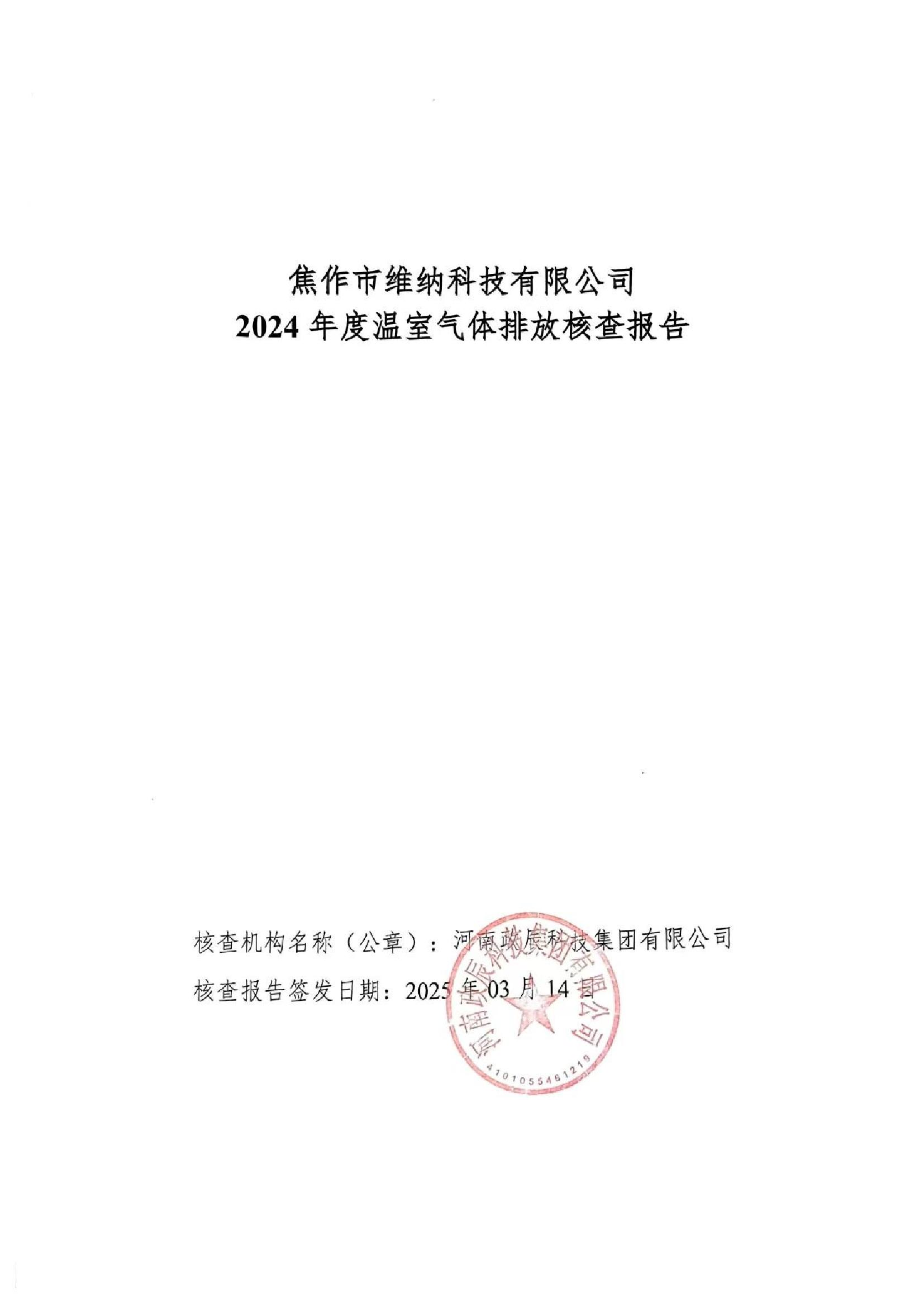 焦作市維納科技有限公司-2024年碳核查報(bào)告
